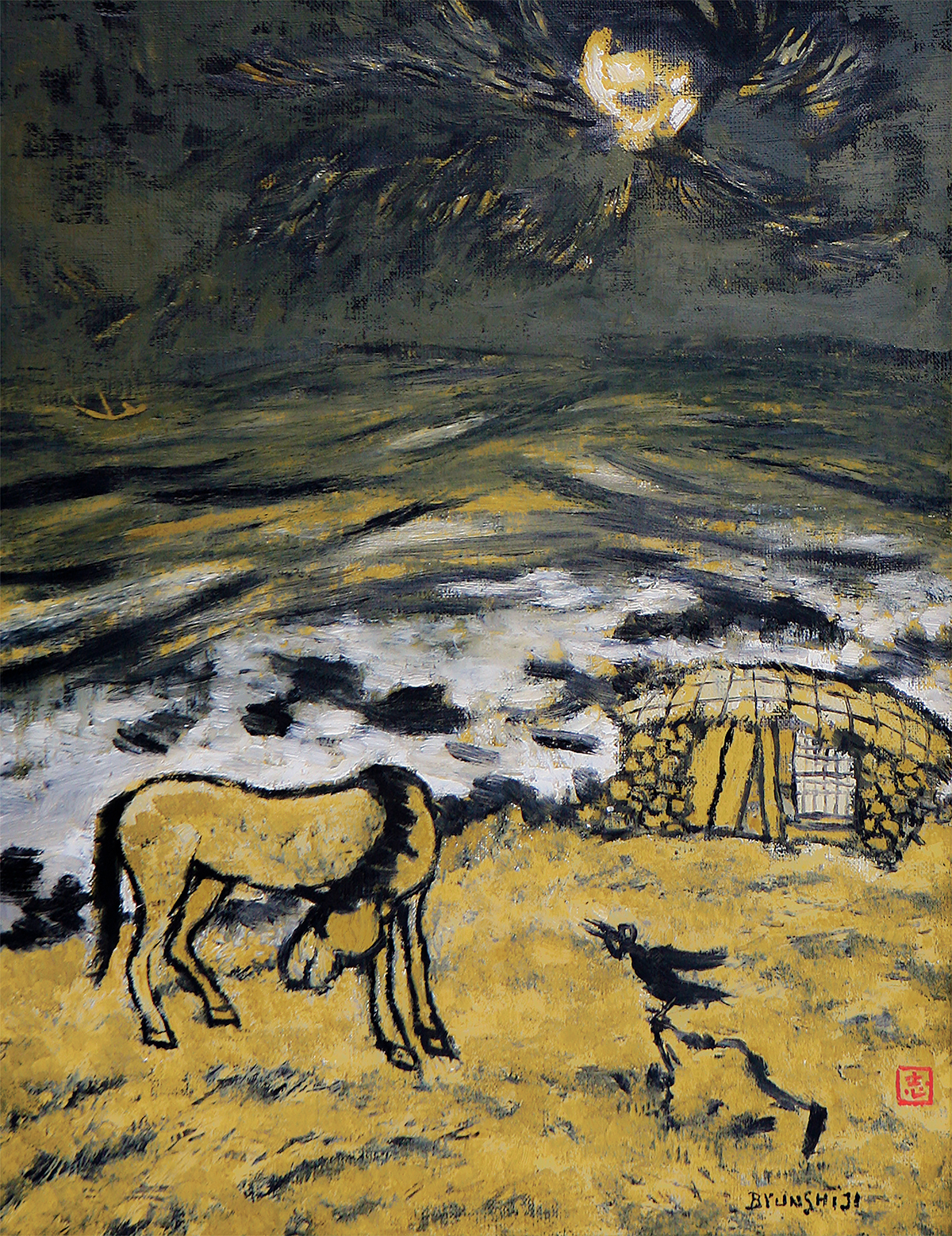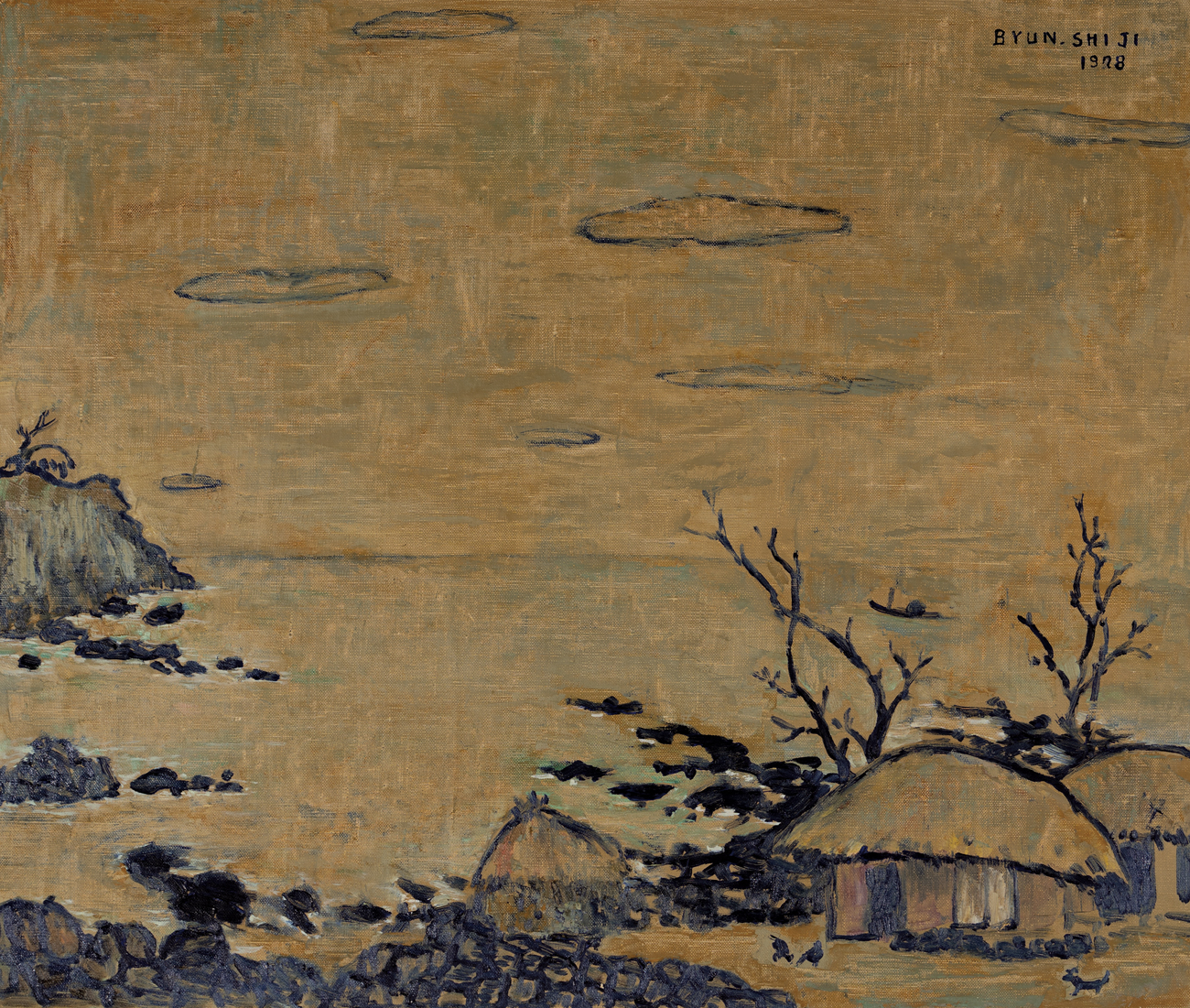 변시지(1926~2013)는 흔히 ‘폭풍의 화가’라 불립니다. 그의 그림을 보면 그 이유를 알 수 있습니다. 황토빛 바탕 위에 거칠게 휘갈긴 검은 선, 바람에 휘청이는 나무와 파도, 그리고 그 속에서 버티는 인간과 동물들. 그것은 단순한 풍경화가 아니라, 제주의 바람과 돌, 바다와 같은 풍토 자체가 살아 움직이는 장면입니다.