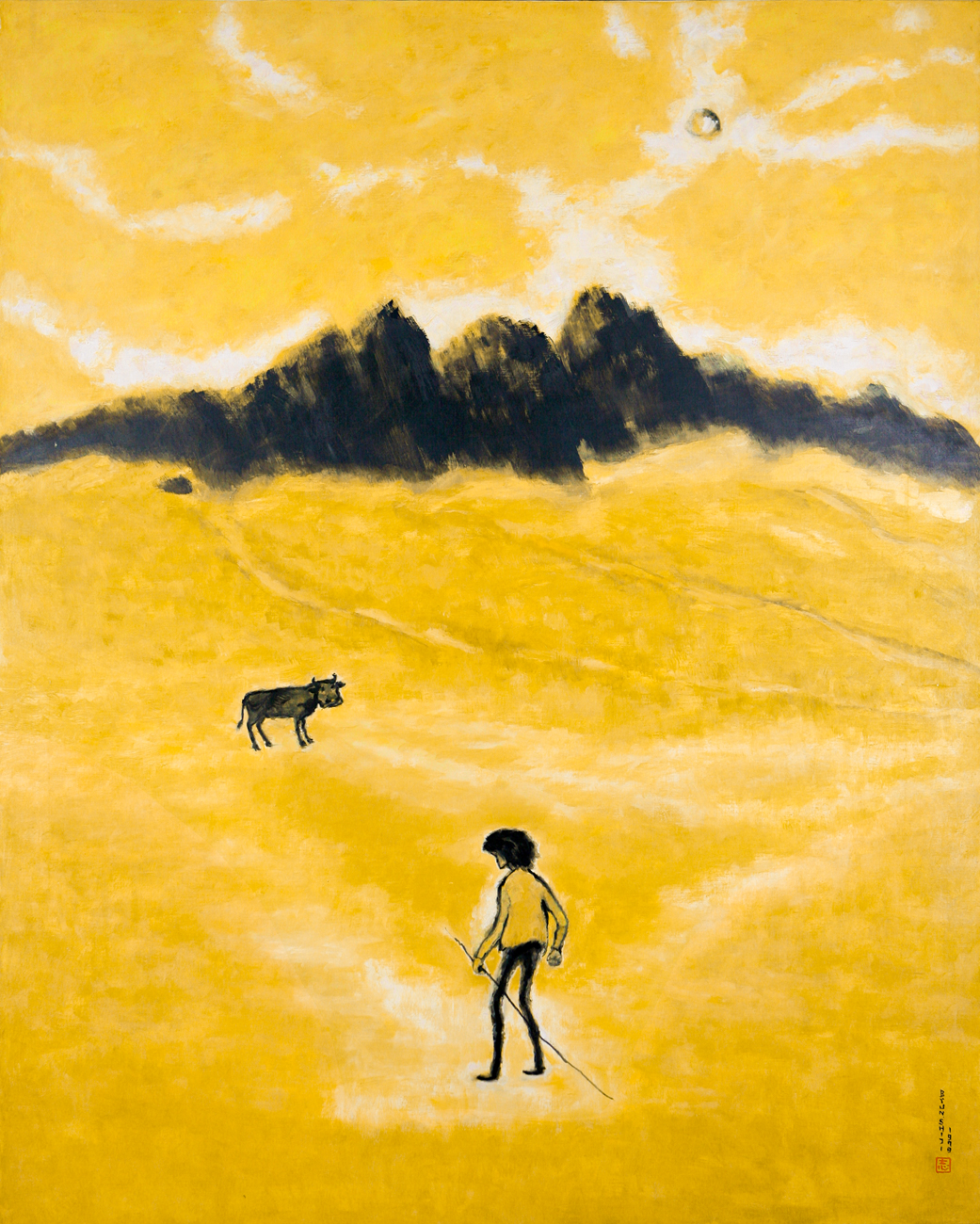 세계미술사 속에서 지역성과 보편성의 결합은 늘 중요한 과제였습니다. 고흐가 아를의 해바라기를 통해 인간 내면의 격정을 드러냈고, 모네가 지베르니 정원의 빛을 통해 자연의 보편성을 탐구했듯이, 변시지는 제주라는 섬의 풍토를 통해 인간 실존의 보편성을 형상화했습니다. 그러나 그의 방식은 조금 달랐습니다. 서양의 유화 기법을 사용하면서도 동양 수묵화의 정신을 결합했고, 그 결과 황토와 흑색의 대비라는 독창적 언어를 만들어냈습니다.